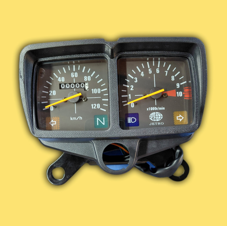 کیلومتر کاربراتوری جترو یک نشانگر دقیق و بادوام است که برای نمایش سرعت، مسافت طیشده و اطلاعات حرکتی موتورسیکلتهای کاربراتوری طراحی شده است. این کیلومتر از قطعات باکیفیت ساخته شده و دارای صفحه نمایش واضح و خوانا با نور پسزمینه مناسب است تا در شب یا شرایط کمنور نیز دید خوبی داشته باشد. طراحی آن کاملاً هماهنگ با مدلهای مختلف جترو بوده و بهراحتی روی موتور نصب میشود. عملکرد دقیق، دوام بالا و ظاهر اسپرت از ویژگیهای اصلی این کیلومتر است که آن را به گزینهای ایدهآل برای تعویض یا ارتقای سیستم نمایشگر موتور تبدیل میکند.